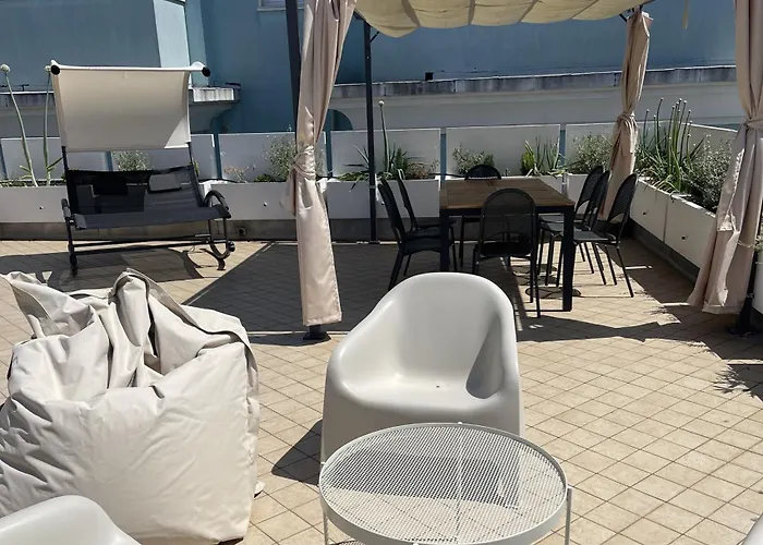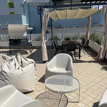 Residence Siesta se nachází 15 minut chůze od centra města Rimini a nabízí pokoje s výhledem na Jaderské moře. K dispozici je parkování na soukromém parkovišti zdarma na místě a Wi-Fi v celé budově.